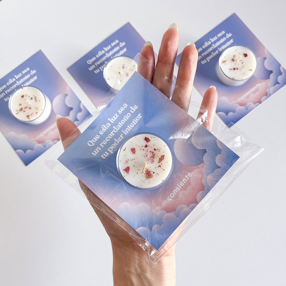 – Postal con mensaje “Que esta luz sea un recordatorio de tu poder interior”.
